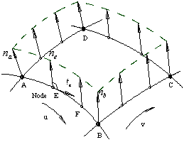 Now calculate the normal vectors at nodes. As show in Fig.5, E is a node